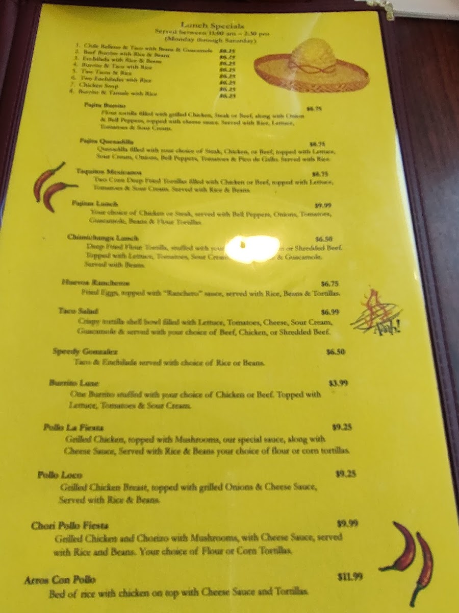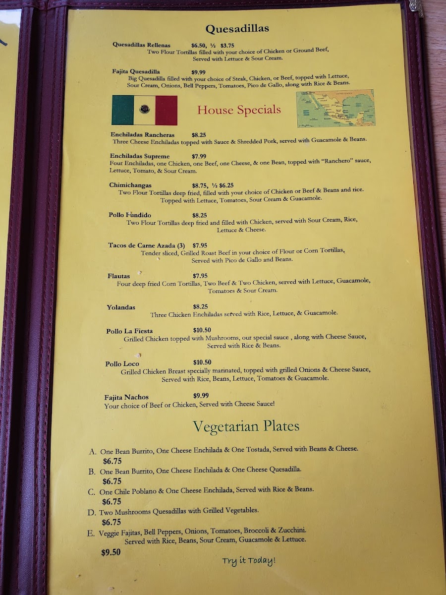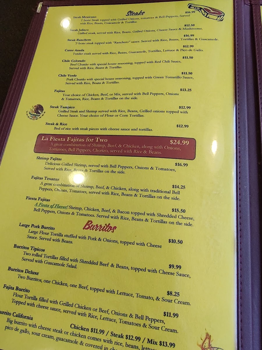 The menu at La Fiesta offers a comfortable and approachable selection of Mexican and Latin American dishes that suit a variety of occasions, from casual lunches to relaxed dinners. You’ll find familiar favorites like chips and salsa or queso dip perfect for sharing, alongside heartier options such as chimichangas, fajita quesadillas, and classic combinations of tacos, enchiladas, and burritos.